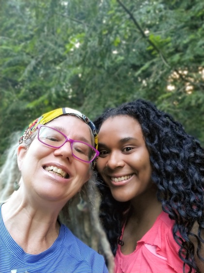 Setting up for practice, morning joggers and dog walkers are also showing up on the path by the stream. The water flows and provides along with birdsong and the rush of wind through the leaves, a soundscape of aliveness. I connect my breath and my body to this aliveness, laying on my back, allowing myself to be held by Earth, six thousand miles of Earth holding and cradling me as I look up at the tall oaks extending up to the vast, blue sky. Here I am with my one wild and precious life.