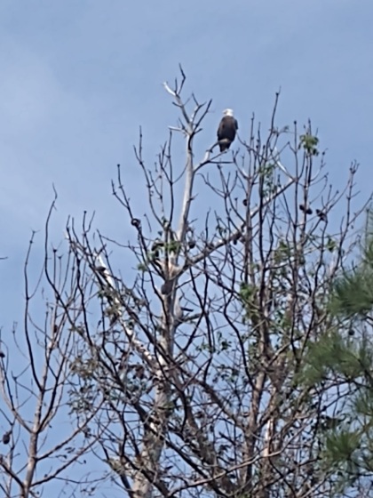 We beheld a giant snapping turtle who has billions of years of evolutionary wisdom on us. We were surveyed by a bald eagle, perched high on a tree looking out over the boundary of the pine forest into the marshes for possible prey. The majestic bird regarded us with what I felt, disregard. We were neither threat, nor food, so we didn’t matter at all to this bird. This felt so right. Our species could stand a bit of humility now and then.