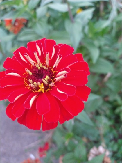 We scatter wildflower seeds in late May and see what happens. This year, the curbside area of grass surprised us with colorful wildflowers and a giant sunflower tree that housed (we counted) over 60 sunflower heads.